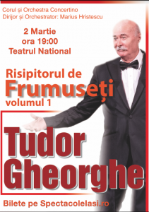 Asa cum ne-a obisnuit mereu Maestrul, in primavara, vom avea o noua premiera. De acesata data, TUDOR GHEORGHE, ne propune PREMIERA intitulata „RISIPITORUL DE FRUMUSETI” ce va avea loc in in 2 martie 2020, la Teatrul National. Acompaniamentul va fi asigurat de Grupul vocal si Orchestra Concertino din Chisinau, sub bagheta dirijorului si orchestratorului Marius Hristescu.